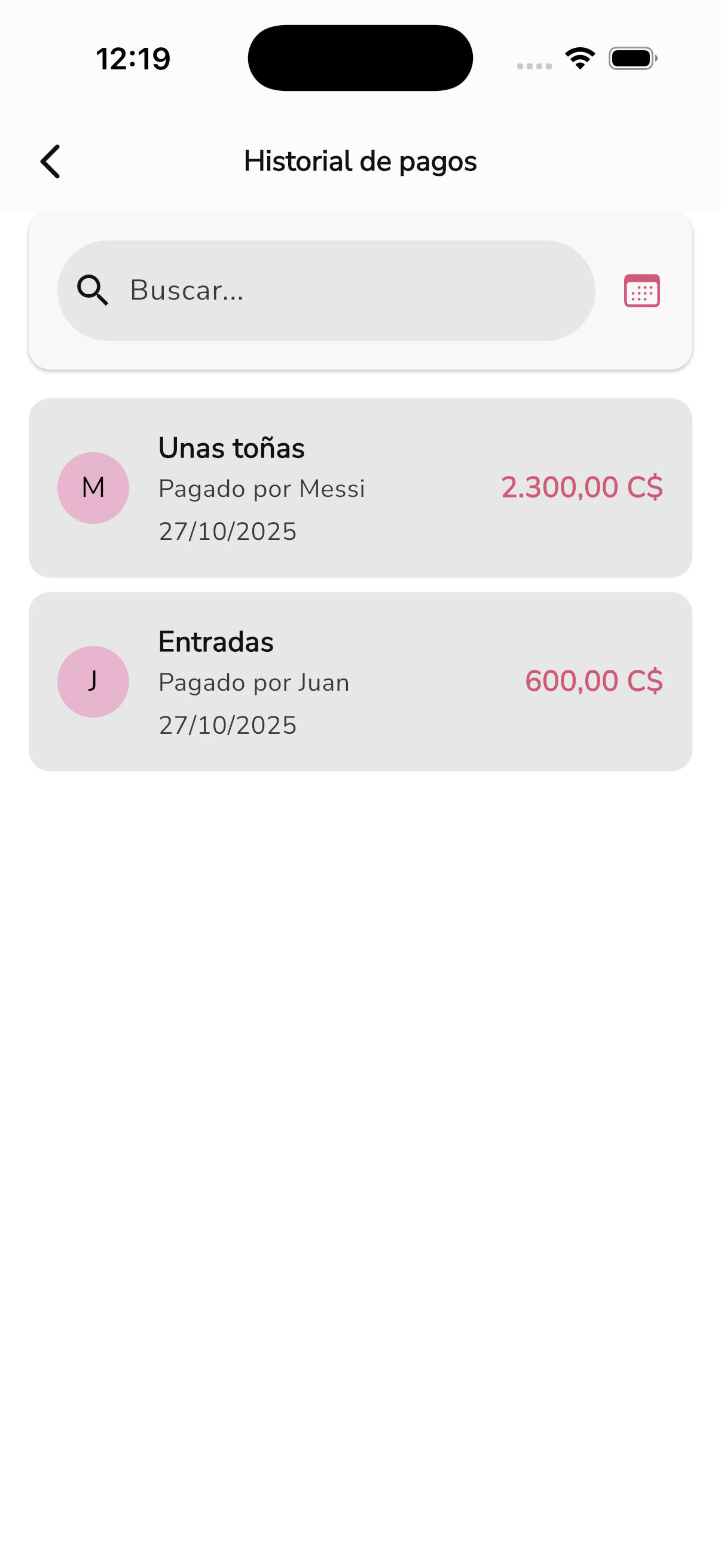 Historial de pagos – Mantén un registro detallado de tus gastos compartidos.